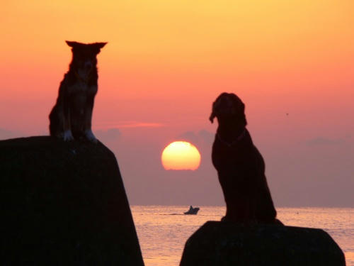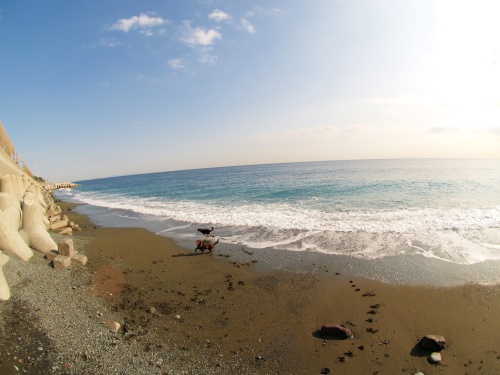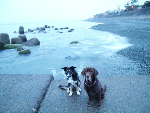 漁師のおじさんはボクタチの事をおとなしいワンコだとおもってるみたいで、「この子たちはいつもおとなしいね!」って誉めてくれる。ぱぱは当然、「はい!そうですね」って応えるんだけど、それは違うだろうってだれか朝の海に突っ込みに来てくんないかな?べつに漁師のおじさんは誉めてくれるだけだからボクたちにとっても不都合はないとおもうんだ。