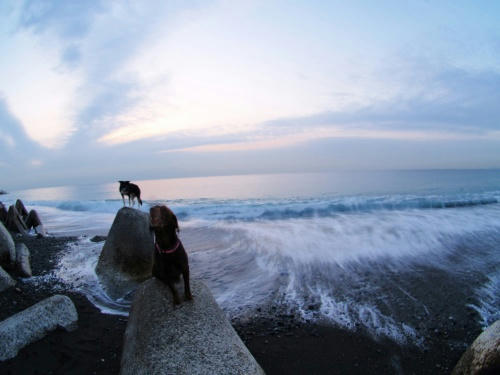 普通の朝。ぱぱはポッケに山形食パンを詰め込んで散歩にでかけた。普通に海に着いて、普通に待てとコイの練習なんだけど、途中で普通に岩の上でのマテの練習も。ウサは波が怖いので逃げちゃうから、ボクだけ頑張ってる。これも普通。やっぱ普通って良いよね。明日もぱんで良いからいつものように出かけようね。
