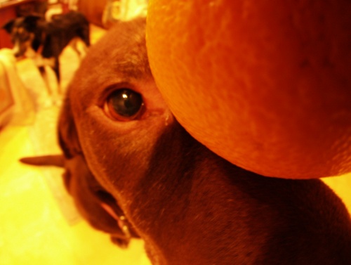 スンゴイ寒い一日がおわるころひさしぶりにぱぱは帰ってきた。お土産はないみたい。ってことでいろんなおやつを振舞ってごまかしてくれたんだけど、最後にボクのひたいにミカンを乗っけて締めにしたんだ。おでこに乗っけるからデコポンと言いたかったのかな?今日の寒さを表現したかったのかもしれない。