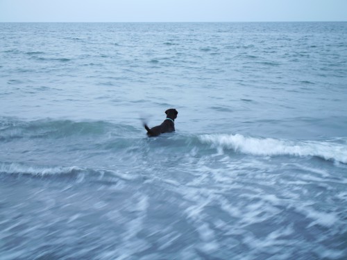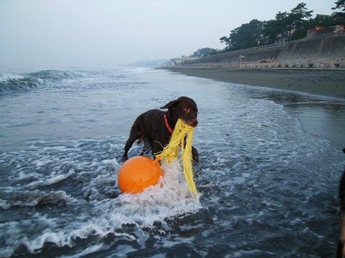 きのうの夜は昼間に続きカミナリゴロゴロでカミナリが平気なボクもちょっとウンザリで情緒不安定になって夜中にぱぱを起こしてしまった。ぱぱは寒かったみたいだけどボクは暑くて、ぱぱは毛布に包まってボクはぱぱの足元にソファーの上でクーラーの程よく効いた部屋で朝まで過ごした。ぱぱは朝早く起きて朝御飯をくれたけど、ボクのためじゃなくて出かける都合があったみたい。だから、朝の海は行っただけでぜんぜん遊んだり出来なくてきょうはこれで終わりなの?なんておもってたけど、ボクの普段の行いが報われたのか少し明るいうちにお家に帰ってきて海で遊べたんだよ。