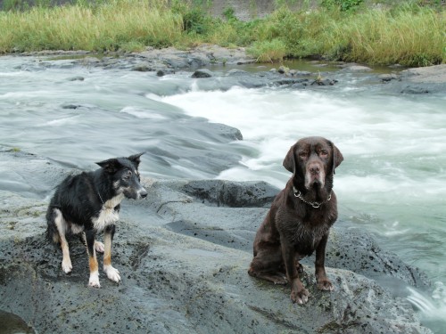 ボクのお家の近くはお日様が出てて、凄い暑い天気だったんだけど、遊びに来た川はこんな感じで少し肌寒かった。だからボール遊びもイマイチ気合が入らないで、ボールが流れて行っちゃいそうになったりと少しだけ波瀾含みの午後だった。でもこの川でもウサがボールを奪いに来て、ウサの実力が上がってきていることを見せ付けたので、ボクも負けてられなくてボールはちゃんと取ってきたんだよ。