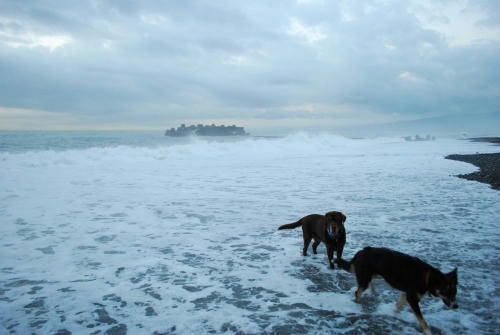 朝、どこの海にするか悩んだんだ。というのも波が高かったから。