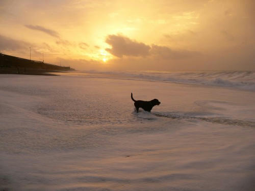 お家が波で揺れてるので海に出られるか心配だったんだけど、なんとか砂浜の広い場所まできょうもやってこれた。さすがにきょうはおやつのおねーさんは来ていなかったみたい。船もみんな高いとこに避難してるし明日の朝の散歩はどうかな?それにさ、きょうの散歩の帰りはボクのリードがなかったみたいだけど、また波にさらわれちゃったのかな?ちゃんと状況を考えて行動してもらわなきゃ困るんだよね。ままにはもう寿命だったから仕方ないって目で伝えとくよ。