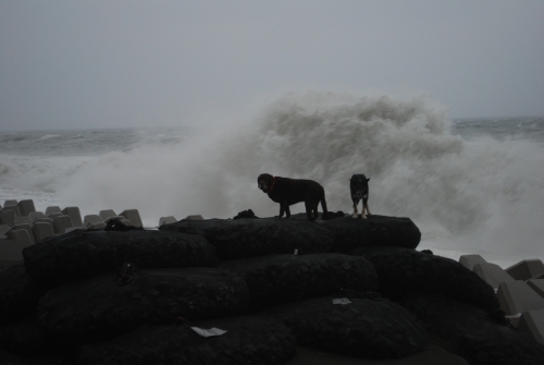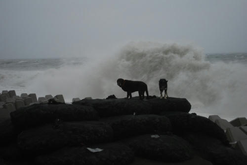 南風が強くて海は荒れてる。トンネルからしばらく海をうかがって安全なのを確認してから海に出た。海には誰も居なかったし南風は強いしまだ雨も降ってるしですぐにトンネルまで引き返しておやつを食べてたらトンネルの中も風が強くてぱぱが持ってきた傘がトンネルの端から端まで風で飛ばされちゃった。そんなあんばいだったので今日の海はすごく短めで切り上げちゃった。最近はぱぱが朝ごはんを食べてるのを見てるとままがボクを呼んでくれておやつをくれることになってるので充実したあさを今日も過ごした。昼間は暖かくてお昼寝に最適でよかった。