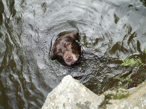昨日は車中箔でいまいちのだったけど、昨日の晩御飯も今日の朝御飯も肉が大盛りだったのでぜんぜんもんくは言わなかった。途中かなり暑かったので、近くの川に連れてってくれたんだけど。夕方になってぱぱがままにそのことを告げたらかなり叱られてた。どうやらウサはまだ川でおよいじゃいけなかったみたい。