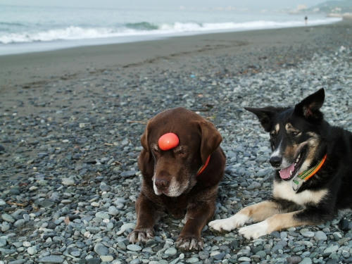 漁師さんの船のところでいつものお仕事をしてたら、バケツに生シラスを入れたおじさんが通りかかった。ぱぱに「写真を撮ってるのかい?」て聞いて、思った通りの返事をもらったあと、ボクタチには「お手」「お手は出来るか?」て言われたけど、そんなことは教えてもらってないので当然できない。おじいさんとか、おばあさんはよくその「おて」って言葉を言うけどなんだろう?昔の良い子のあいさつの代表みたいなものかな。