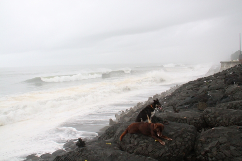 見学した後はウサの運動に付き合った。無駄に走り回ったウサは海ではないのでクールダウンする場所が無くて困ってた。