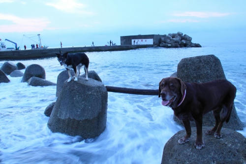 波しぶきも飛んでくるしウサが泣き出す前に早く帰っちゃおう。