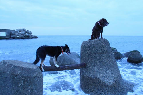 ここらあたりを一巡してきた。漁師さんは暗いうちから網にかかった大きなエビを網から外しているみたいだ。明るくなったころその作業の終わりかけた横を通ってここに来たけど、何もすることが無かったので、昨日の続きをすることにしたみたい。ちょうど波も引いた感じでトライするにはよさそうだ。