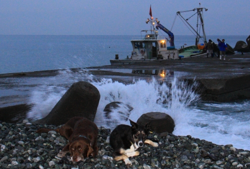 昨日の夜におやつで食べたお肉が効いたのか、朝になると少し元気になっていた。それでも、海になんて行く気はなかった。ぱぱはボクのマッサージをしてくれてボクの元気さを確認して、海に行けることを判断して海に出かけた。海ではあまり歩き回らないように気を使ってくれたんだけど、なぜかウサもボクも頭から波をかぶってしまった。