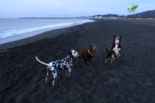 ボクの手の上にぱぱが変な魚を乗せてるとクロエちゃんが救助にやって来た。ボクは頑張って駆けて逃げ出した。ウサはとっくに逃げていたけど、ぱぱに呼び戻されてその変な魚を手に乗せられてた。その間ボクはクロエちゃんと緑のトリのオモチャで遊んでいた。役目を終えたウサも合流して、緑のカバと緑のカエルと緑のトリでしばらく遊んでいたら、いつの間にか帰る時間を過ぎていたので帰ることになった。