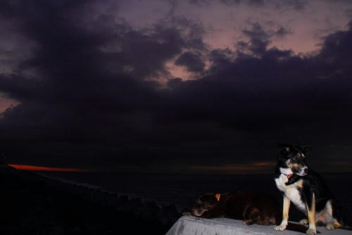 あさうちの前の海に行った。工事が始まっているはずだけど、特に変わったことは無さそうに見える。ボクタチがいつも通ってたところは工事中は入っちゃダメってことでロープを張って入場制限をしてあるくらいだ。