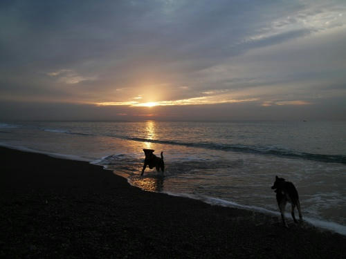 お日さまは少しだけ出てきてすぐに隠れちゃったんだ。相変わらずぱぱは長靴じゃない。ボクははだしだから関係なく海に入った。冷たかった。