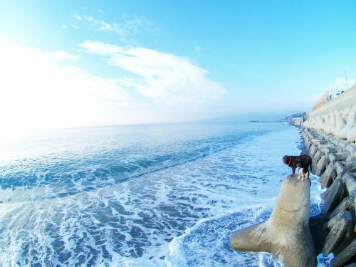 んだけど、ここに居るとおやつがもらえるし波を被らないで済むし。