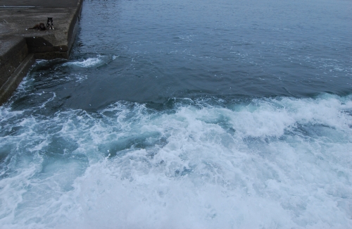 台風の影響を気にしてるのか、あまり人が多くない海だった。