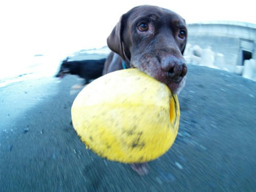いつもの生活が戻ってきた。まずはぱぱをやさしく起こすんだけど、相変わらず苦しそうな顔をして起きると、毛布を頭までかぶって「もうちょっと待って」ってお願いされちゃうんだよね。そんでおやつを食べながら海に行くんだ。きょうはあまり波は高く無かったよ。