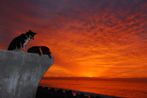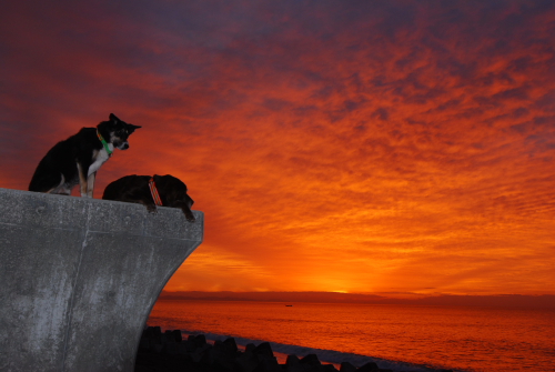 ぱぱは海に行く気分ではなかったみたいだけど、南の空を見てあわてて海にやって来た。当然来る気のなかった海はサッサと引き揚げてお家の中に入ってぱぱはお昼寝を始めた。ボクも付き合ってお昼寝した。夕方になると少しだけマッサージをして貰って、夕方のおやつを食べてそれからすぐに夕ご飯を食べた。
