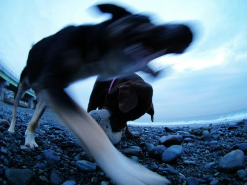 きょうはかろうじてぱぱよりも先に起きたよ。そのおかげか海でボールを発見したんだけど、空気が入りすぎてて遊ぶのは難しくってつまんなかった。もうチョイ寝かせとけば良い感じの空気の入り具合になるかもしんないからぱぱにどっかでキープしといてもらうようにお願いしたけどどうだろう。