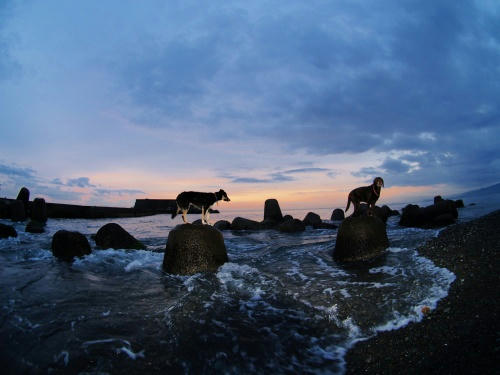 予定通り今日は車で送り迎えの散歩?散歩って何?道路を歩く散歩はボクは大嫌いなんだけど?ビーチを歩くのは何。散策?徘徊?適当な呼び名募集中。採用された案にはポークジャーキー2日分進呈。でも食べ過ぎてお腹を壊してもそれは自己責任で処理してね。