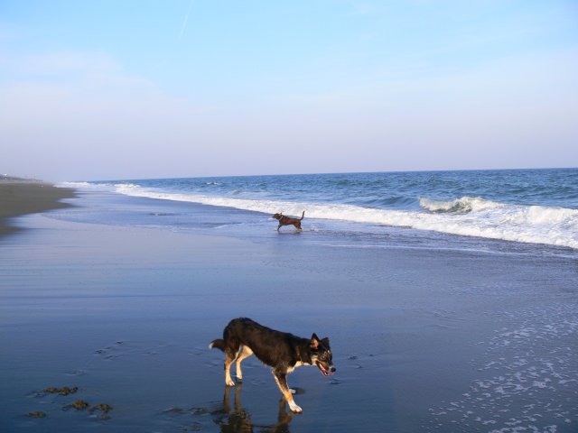 朝の海は波はあまり無かった、だからぱぱはイワシを3匹捕まえることができたみたい。ボクの方が先に獲物にたどり着いたから食べちゃおうかななんて思ったけど、後が恐いからやめといた。夕方の海は昨日と同じく波が高くてちょっとスリルのあるボール遊びが楽しめたんだよね。