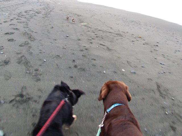 散歩の終わり間際にこの前のトリさんに出会った。ウサがいきなり挨拶に行こうとしたのであわててぱぱは僕たちを呼び戻した。で、ボクもウサも挨拶しようとしたんだけど、走って遠ざかって最後に山の方に飛んでっちゃった。やっぱりアヒルさんなのかな?そういえば前に近所の川にいたトリさんに似てたような気もするな。今度であったらどうするか考えといた方が良いかな?みんなだったらどうする?