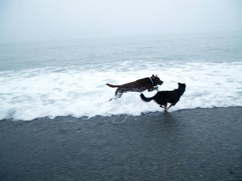 きのうウサに1週間分のぱぱの夕飯を横取りされたぱぱはヘルシーメニューで我慢してるみたいだ。ボクたちも肉は少なめでスパゲッティーとか消化のよさそうなものを食べている。でもウサもボクもわりと元気で海を走り回っているんだ、別に肉じゃなくても元気で居られるんだね。でも、やっぱ肉が食いたいよー!