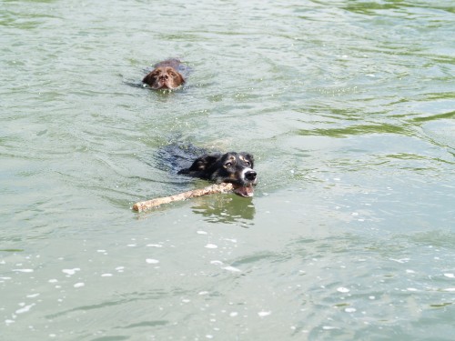 きょうは朝からついてなかったかも。ようやく川に入れてもらったんだけど鮎釣りの針が足に刺さっちゃったんだ。車に帰ってタオルしてもらってるときにぱぱが気づいてくれて取り除いてくれたんだけど・・・・・!ぱぱもきょうはついてなかったみたいで悲しそうな顔をしてたね。そういう意味もあってか一日中泳いでいたかも。