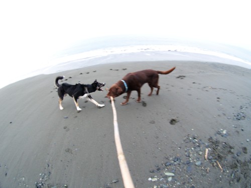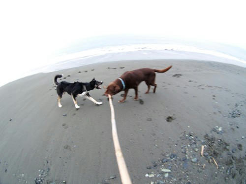 久しぶりの朝の海。でもあまり遊ばずに散歩は終っちゃった。旅の疲れが残っているので別に良いんだけどね。でもやっぱり我が家が一番だね。