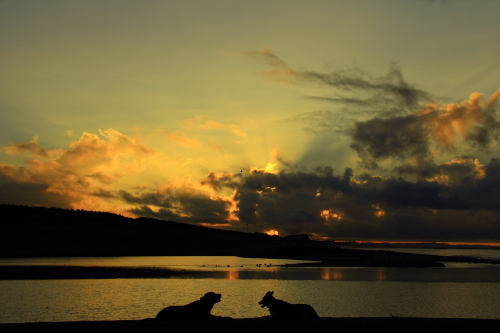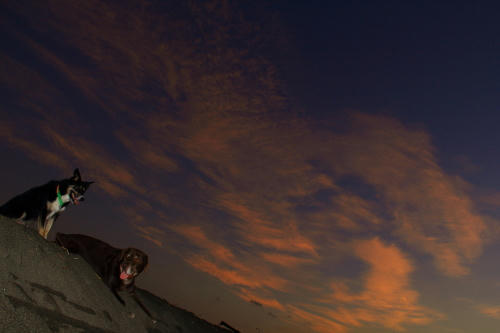 朝早く海に行ったのに、蒸し暑かった。とりあえずぱぱの頑張りの誘導で目的地まで行ってそこで横たわって休んだ。でもいつまでもずーーーと休んでられるかと言うとそうでも無くても、暑さにもだんだん慣れてだんだん動きたくなってしまうんだよね。それで少し動くと、やっぱ動かない方が良かったかなと思いつつまた歩く。そうしこうしていると帰る時間が近づいてきて、ああ、こんなに遠くまで来なきゃよかったと思いつつ歩くんだけど、それでも不思議なにおいにつられて匂いを嗅ぎつつ徘徊したりもする。ウサはそんなボクの周りを走り回っている。