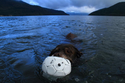 午前中に爪とぎに協力したご褒美に夕方の少し前に泳ぎに連れて行ってもらった。