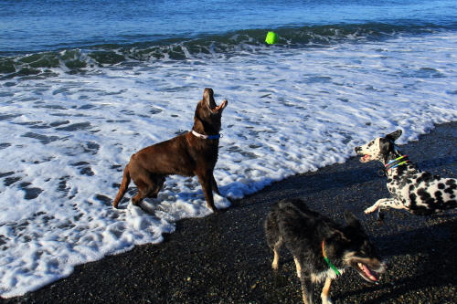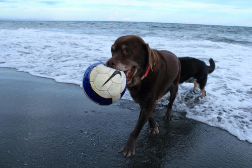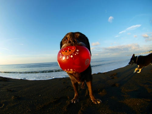 際を歩いたりしてるとクロエちゃんがやって来た。クロエちゃんとボール遊びをしてまた