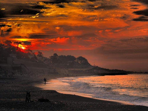 ぱぱの膝の上で波に襲われる。ぱぱは当然