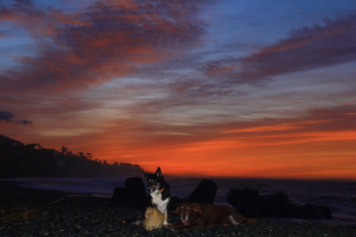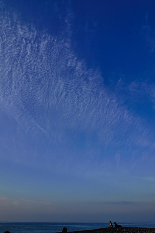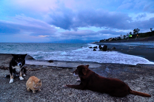 海はすごく荒れてて、ネコさんはちょ