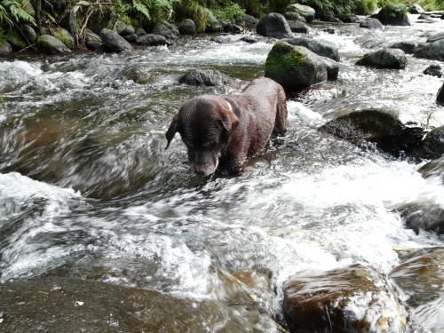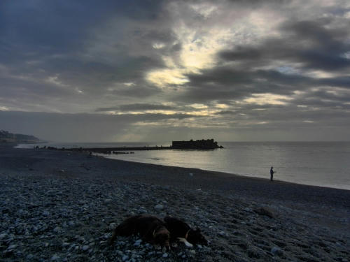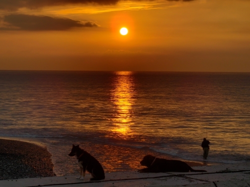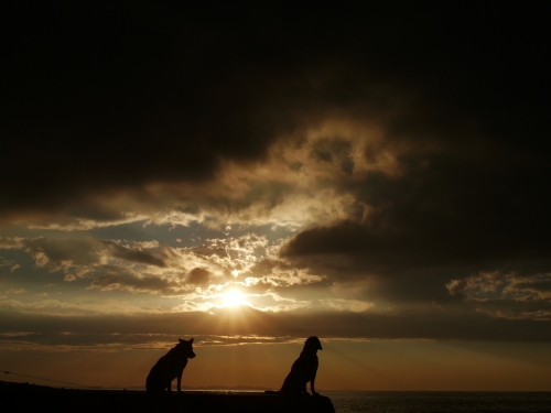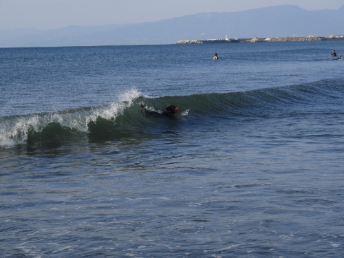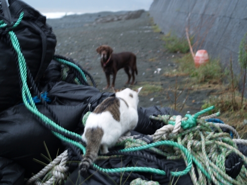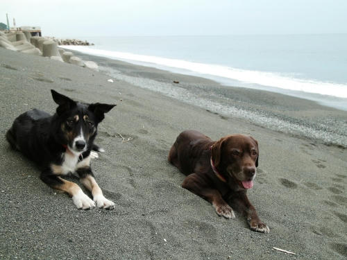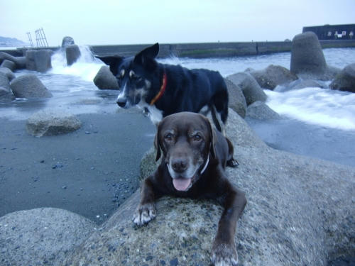 ぱぱは雨の音で目が醒めたらしい。ボクとウサはしぶしぶ起きたんだけど、すぐに海に行く事は無くて少しだけ小降りになるのをお風呂に入りながら待ってたみたい。それでかなり経ってから海に着いたんだけど海に着いてからあまり長くは居られなかった。というのもネコさんのリーダーに見張られてて居心地がイマイチ良くなかったからだ。