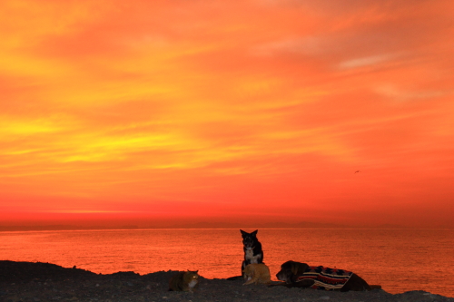 ってきたので、ネコさんは波で濡れ