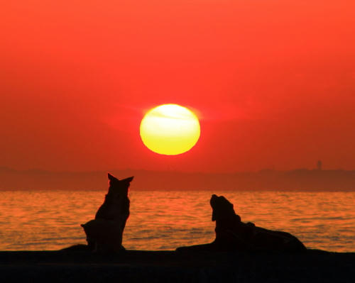 ネコさんは船着き場の入口で待ってる。