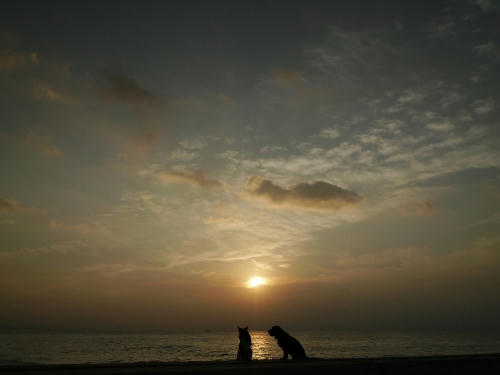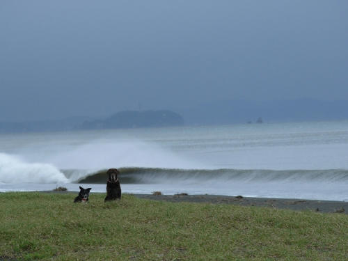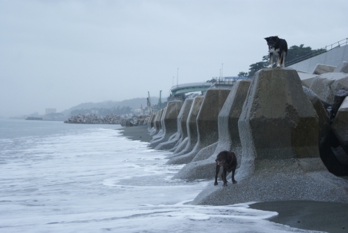 波打ちぎわに近づくとすごい風で砂が飛んでくるので風の弱い場所に移動した。風が強いのでかなり涼しくて朝はわりと元気だったんだけど昼間は暖かくなっちゃったのでゆったりと昼寝を楽しんでたらぱぱとウサだけでどっかに出かけちゃった。ボクンチの前のトンネルは台風の波で封鎖されてたので朝と同じ場所に出かけたに違いない。