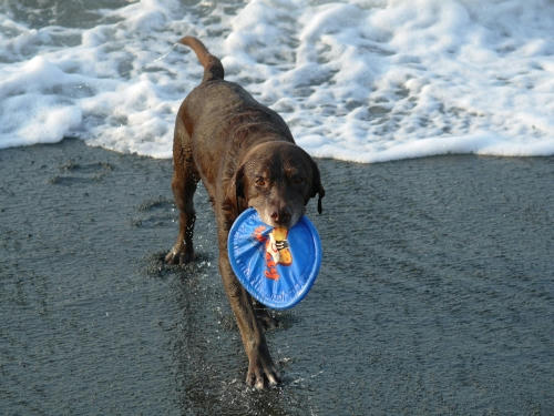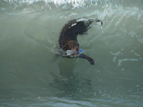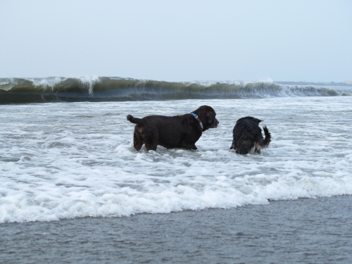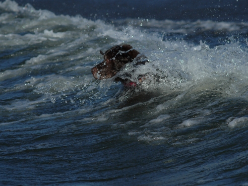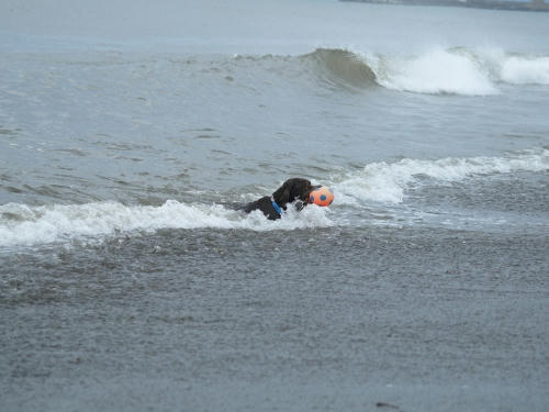 ぱぱがボールを投げてくれたんだけど、1回取りに行ったらもう良いやって感じであとはウサに任せた。でも、ウサは取りに行くのを途中でやめたので強い北風に押されたボールはあっというまに沖に消えていった。