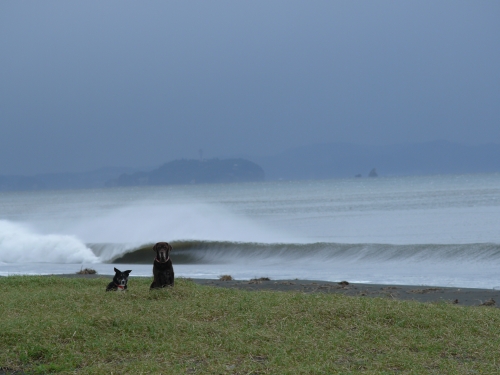 昨日と同じくらい寒いんだけど、波はあまりないような気がする。