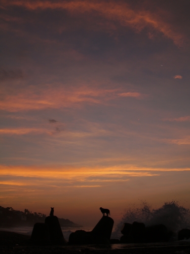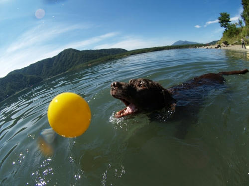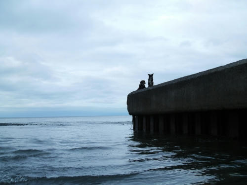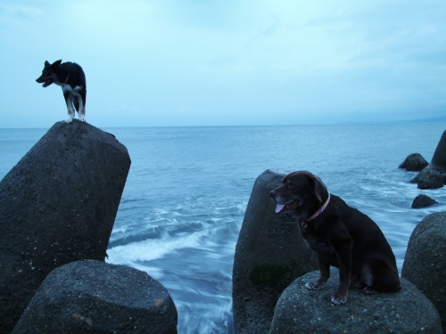 昨日の疲れが残っている家族みんなでゆっくり寝た。なので朝起きたのはぱぱが一番だったかもしれない。それからしばらくして自分ちの前の海に行ったけど、釣り人がびっしり埋め尽くされててボクタチははしっこのほうで遊んだ。ウサはボールをブロックの上のぱぱのところに運ぶ担当で、ボクは海から持ってくる担当。ブロックのとこまで波が来てたのでボール遊び以外は出来なかったので、クロエちゃんの居るビーチまで移動。