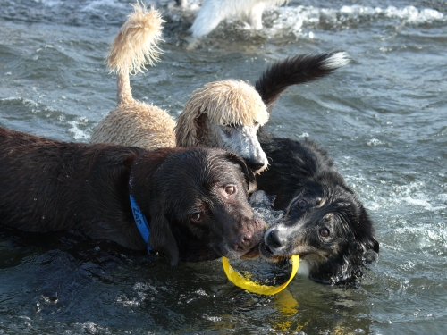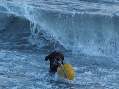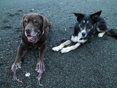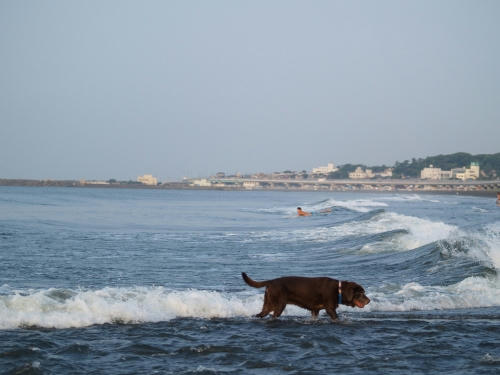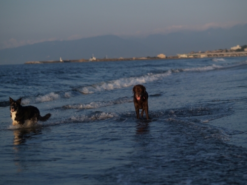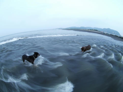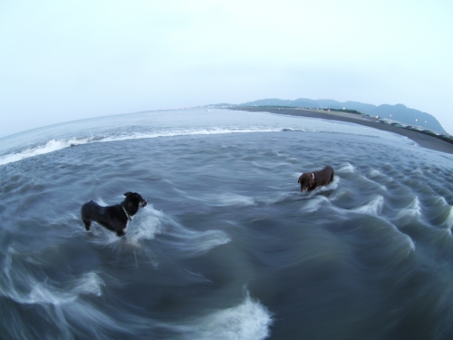 いつもの時間に海に行ったけど、海には入らないで出発地点まで戻ってきた。このまま帰るのかな?って思ったらコンビニでガリガリくんを買ってきた。ウサとボクにひとかじりづつ交互にもらいながら食べ終わった。当然ウサのひとかじりは大きくてボクのはちょこっとだ。無事食べ終わった後川の方に行って海に入る事になった。ちょうど波の無いところがあって遊ぶのには最適だった。途中でサージュちゃんやりきまるくんもやってきてにぎやかに遊んでお家に帰った。