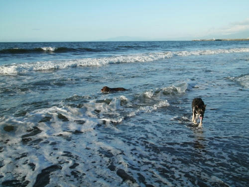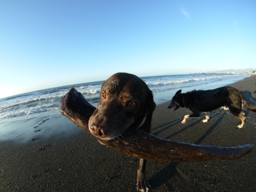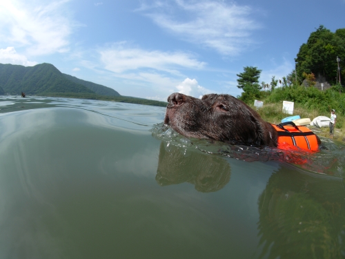ウサは足を青いビニールテープでグルグル巻きにされたけど、車から降りてすぐに水にはいっちゃってまだ涼しい時間から泳ぐ事になってしまった。そのビニールテープでぐるぐる巻きにされた足は歩くには不便そうだったけど、泳ぐに特に問題なさそうでボクよりもいっぱい泳いでいたかもしれない。ボクも最初はライフジャケット無しで泳いでたんだけど、途中疲れたのでライフジャケットを装着してかなり長く泳いだ。