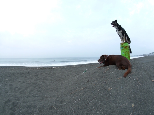 ちょうど海に入って良い塩梅に濡れてたので豪勢に砂が付着しててその後ぱぱは洗い流すべきか乾かして落とすべきかで小一時間悩んでたね。