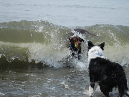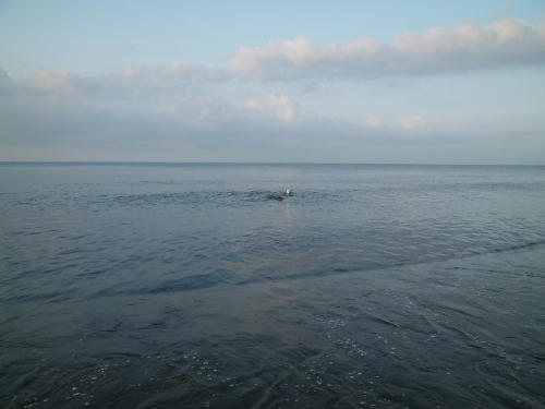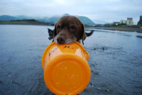 ボールで遊んだんだけど、久しぶりに沖のほうに流れて行っちゃった。冬の間にボールは貯めてあるから流れて行っても全然問題ないんだよ。