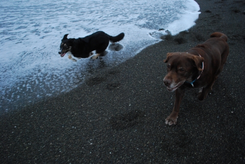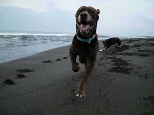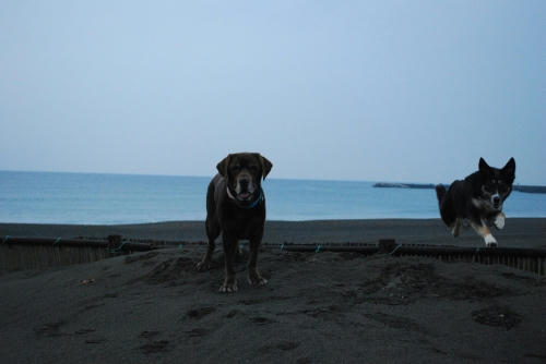 海ではいつも会うボーダーのペアと少しだけ遊んだ。ウサはもっと遊びたそうだけど、ウサみたいに乱暴な遊びは好みじゃなさそうだったね。