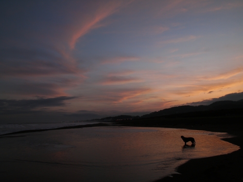 きょうは失敗だったみたい。寒かったので南に向ったんだけど、天気が良かったのは北のほうだったみたい。ボクは朝の海で少し体力を温存してたんだけど、ぱぱはいつものように計画無く使い果たしていたので、南の方の海から帰った後は燃えカスのようにボクと一緒にソファーで寝てた。