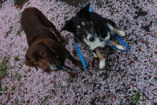 海では右のポッケにカラスさんの、左のポッケにボクたちのおやつを入れて歩き始めたけど、左手には傘を持っていたのでボクタチのおやつはじれったいほど出が悪かった。
