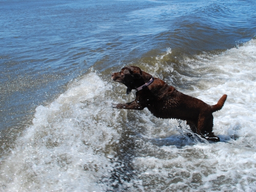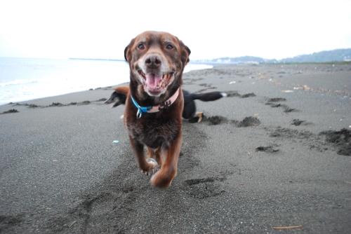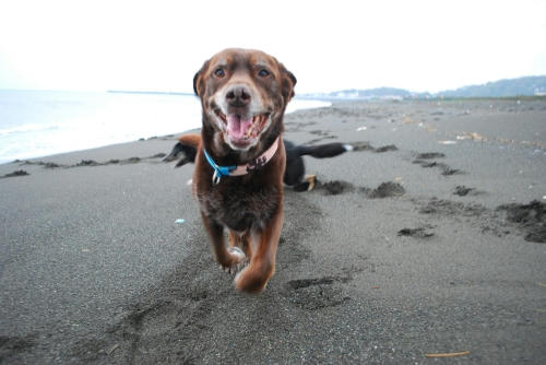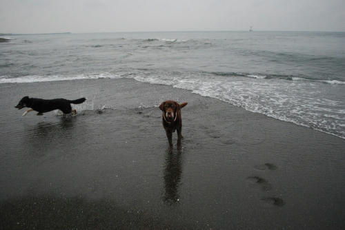 いつもはボクのシッポの振れ具合で出かけるかどうかを決めるんだけど、きょうはそんなことも無く海に行く事になった。