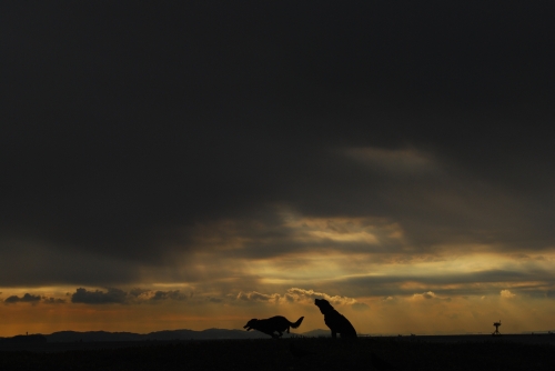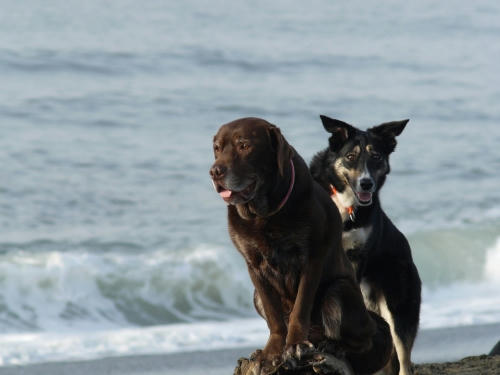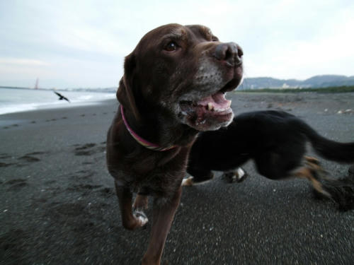 時々会うボーダーコリーのコンビと遊びながら海水浴場の方角に進んでったけど暖かくはならなかったので早々に帰る事になったみたい。