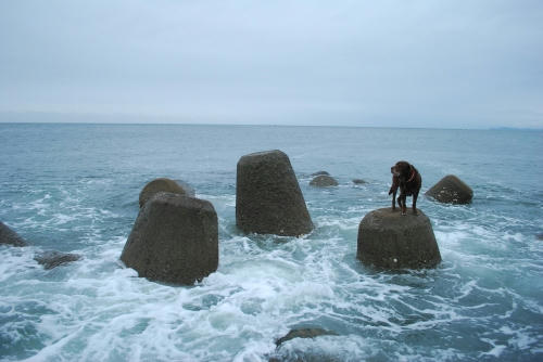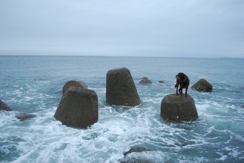 朝の海はそれなりに穏やかでお山の上でいつものように過ごしたり、波打ちぎわをぶらぶらと歩いたりして過ごした。
